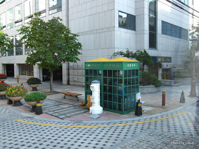 可愛的郵桶(白色的)跟電話亭(綠色的)